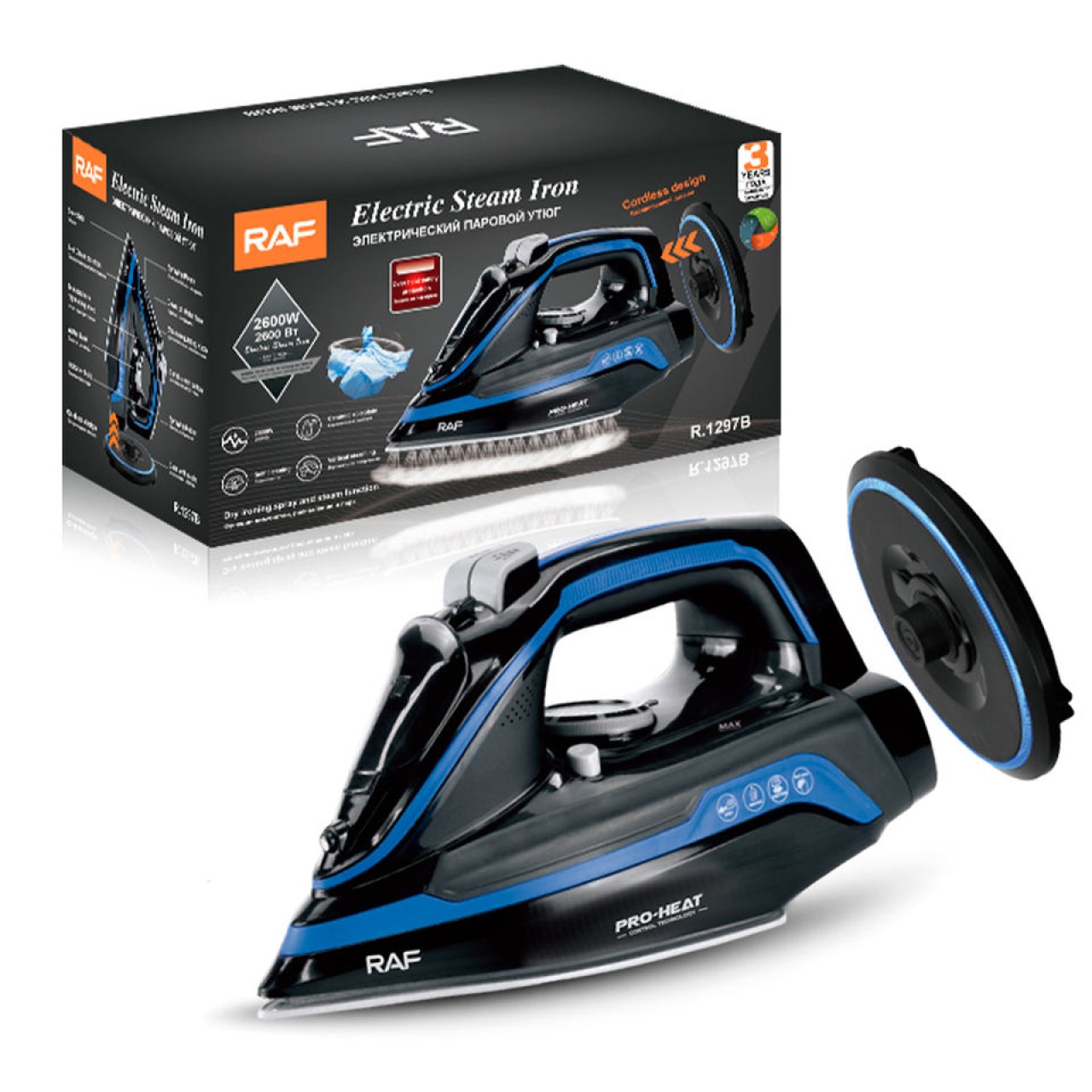 Le fer à vapeur hybride sans fil/sans fil de 2600 watts fournit jusqu'à 60 secondes de chaleur et de vapeur continues en mode sans fil, et se réchauffe rapidement en seulement 25 secondes lorsqu'il est replacé sur sa base.
