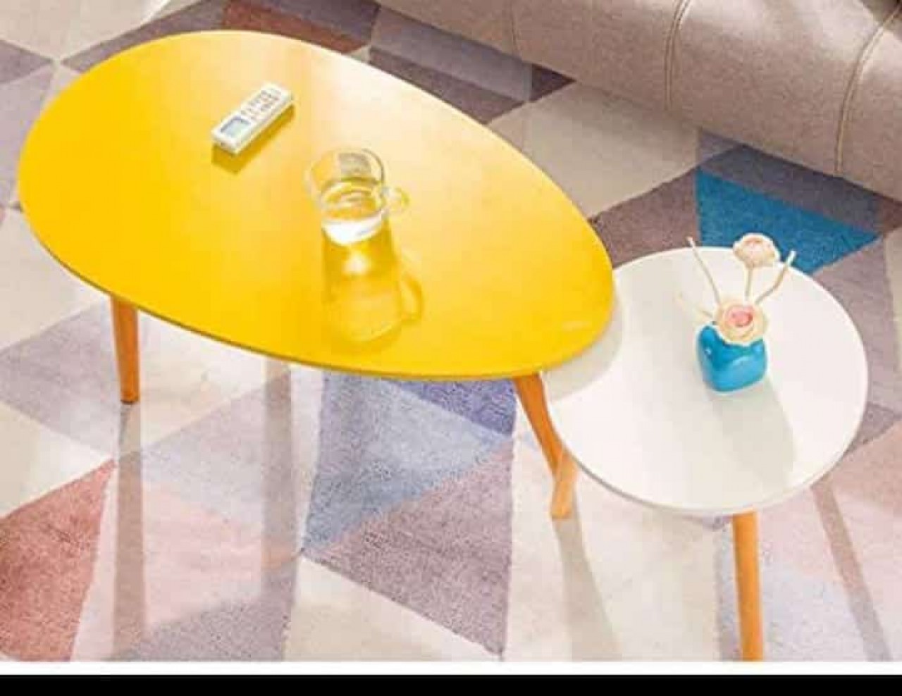 TABLE BASSE guéridon deux tons blanc et jaune parfait pour votre décoration intérieur…